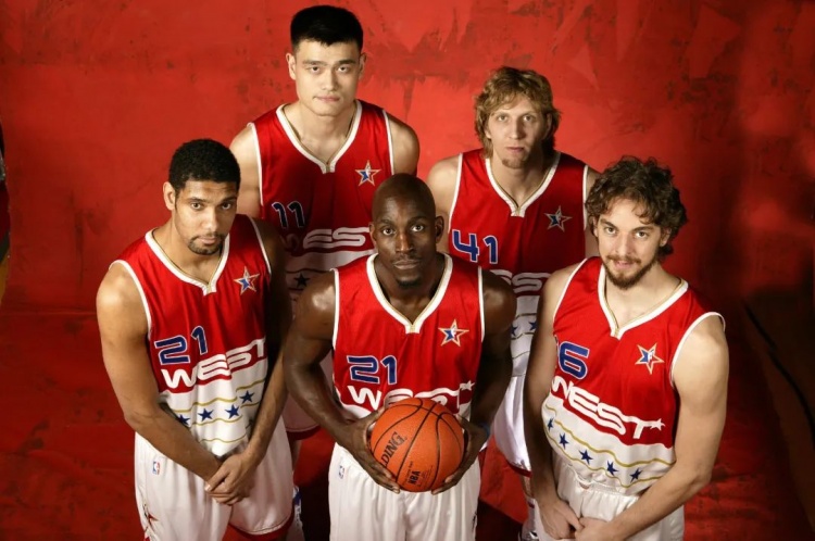 当然,只看全明星,那些年的正赛阵容中也始终保持了一定数量的国际球员,姚明、诺维茨基、纳什、帕克、加索尔,然后吉诺比利、奥库等偶尔拿张体验卡。但可以明显看出西部队基本总是包圆儿,东西部严重不平衡。
