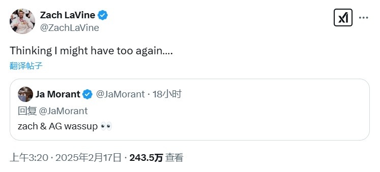 拉文刚刚转发莫兰特的推特并回应道:“我在想我可能会再来一次......"