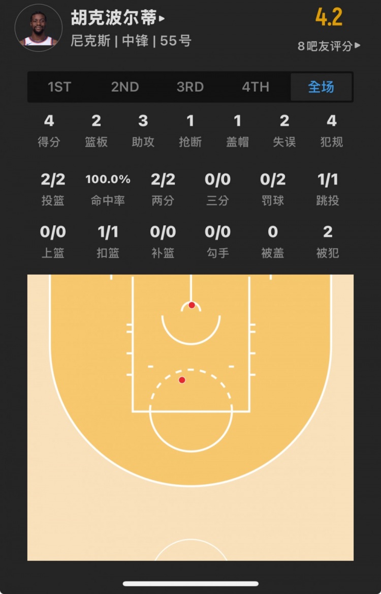 尼克斯58号秀 阿里埃尔-胡克波尔蒂 登场19.2分钟