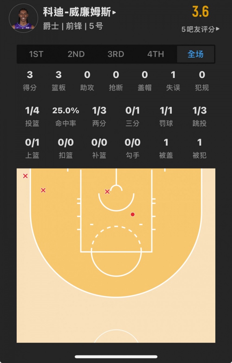 爵士10号秀 科迪-威廉姆斯 登场16.0分钟
