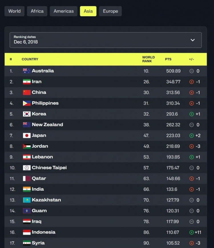 2018年12月,关岛第一次有了世界排名,落在了亚洲第14,世界第79的位置