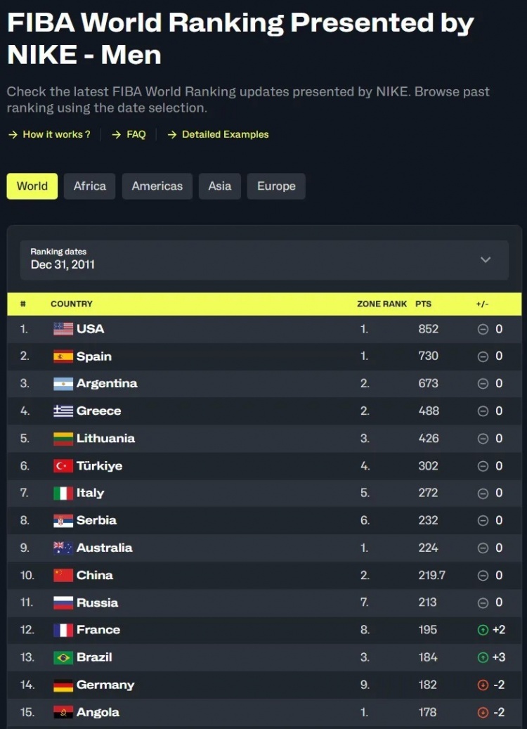 相对而言,国际篮联FIBA对于世界排名的计算就不太被关注了,不仅在于它的算法更为繁琐和复杂,更在于一直以来都颇有几分神秘色彩。