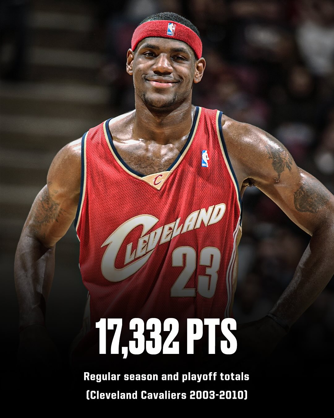 49999已断档领先!詹姆斯职业生涯四队总得分分布 热火时期最少