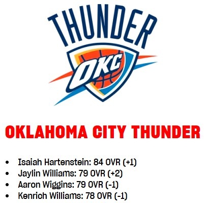 雷霆球员2K能力值更新:哈滕+1至84 杰林威+2 阿隆-维金斯&肯威-1