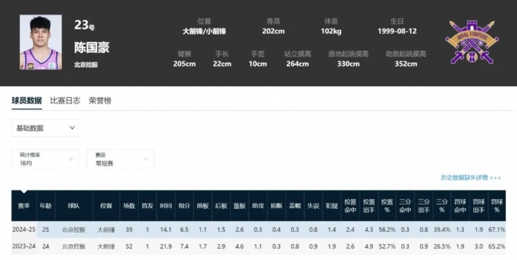 PS:赛季开始前我写文章我们认为谢智杰的风格大概是后卫线版陈国豪,其实他俩不止风格,在球队里面临的竞争压力也很类似,主要对手都是强力外援+国家队边缘人