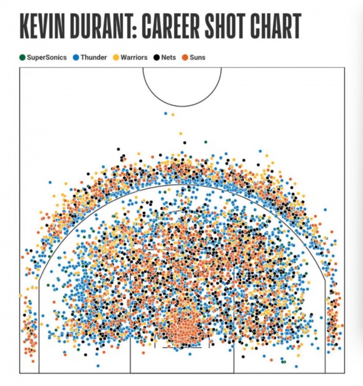 杜兰特30000分:雷霆17566分 勇士5374分 篮网3744分 太阳3316分