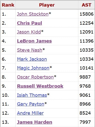 里程碑!哈登生涯助攻突破8000大关 历史第十三人&现役第四