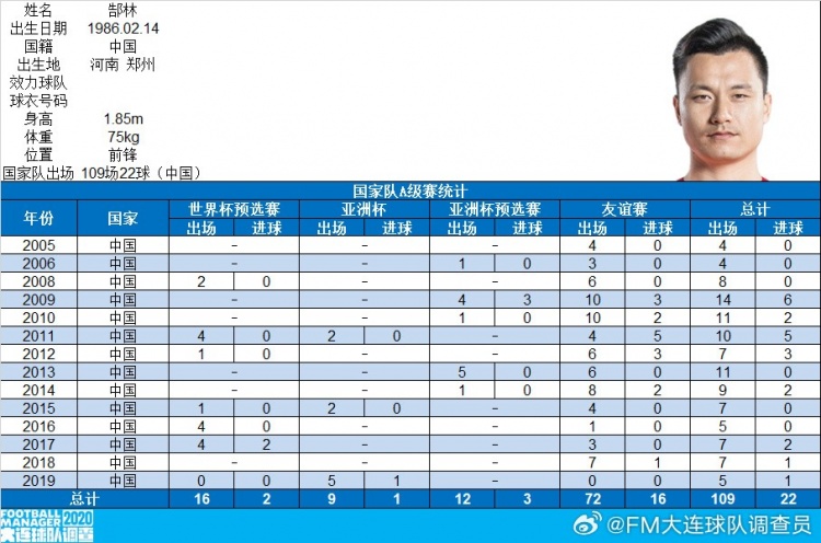 2月18日讯 在2月16日中国足协为郜林举办退役仪式后,博主“FM大连球队调查员”在社媒公布了郜林的生涯数据统计。