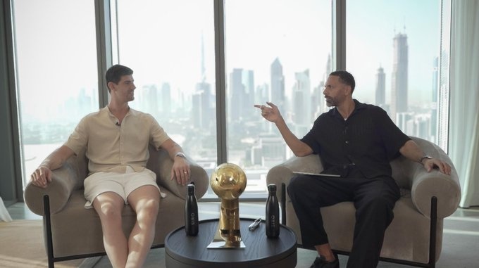费迪南德对库尔图瓦进行了专访,他在社交媒体上晒出照片,并配文:“世界最佳门将叫做库尔图瓦,欢迎来到Rio Meets节目。”