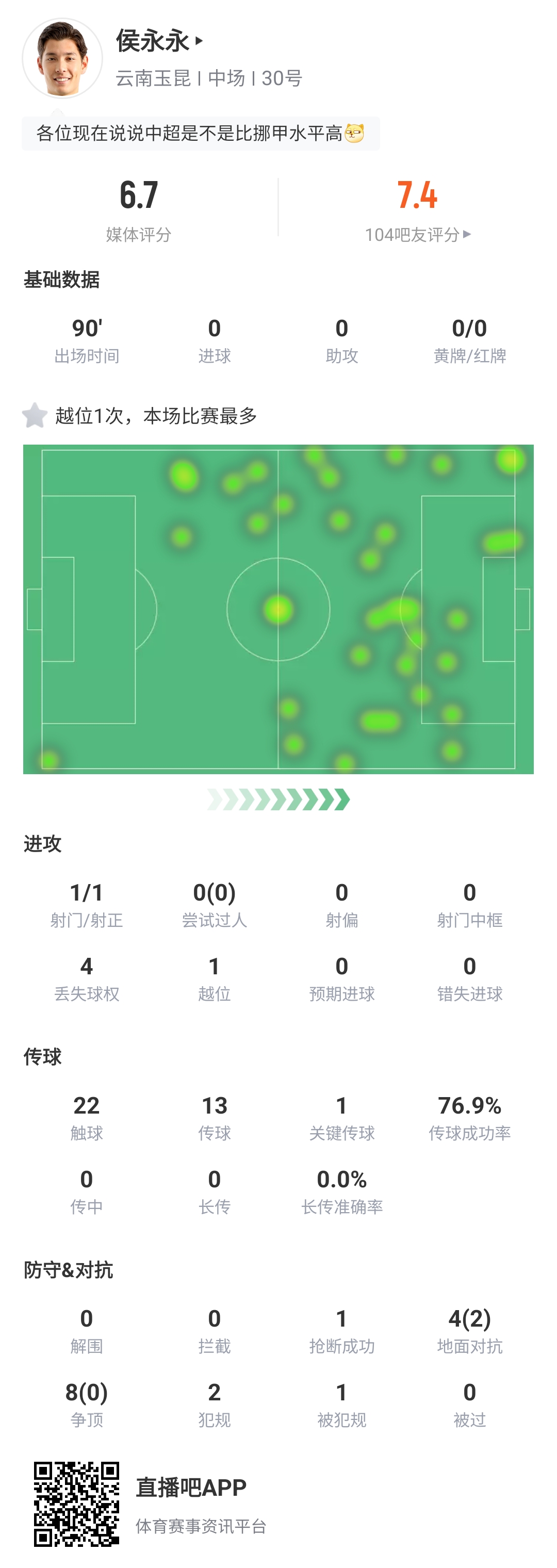回归首秀!归化球员侯永永获吧友7.4评分:现在中超是不是>挪甲