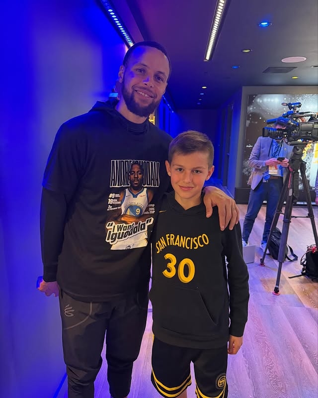 克罗斯现场看勇士vs独行侠&伊戈达拉球衣退役仪式,赛后合影库里