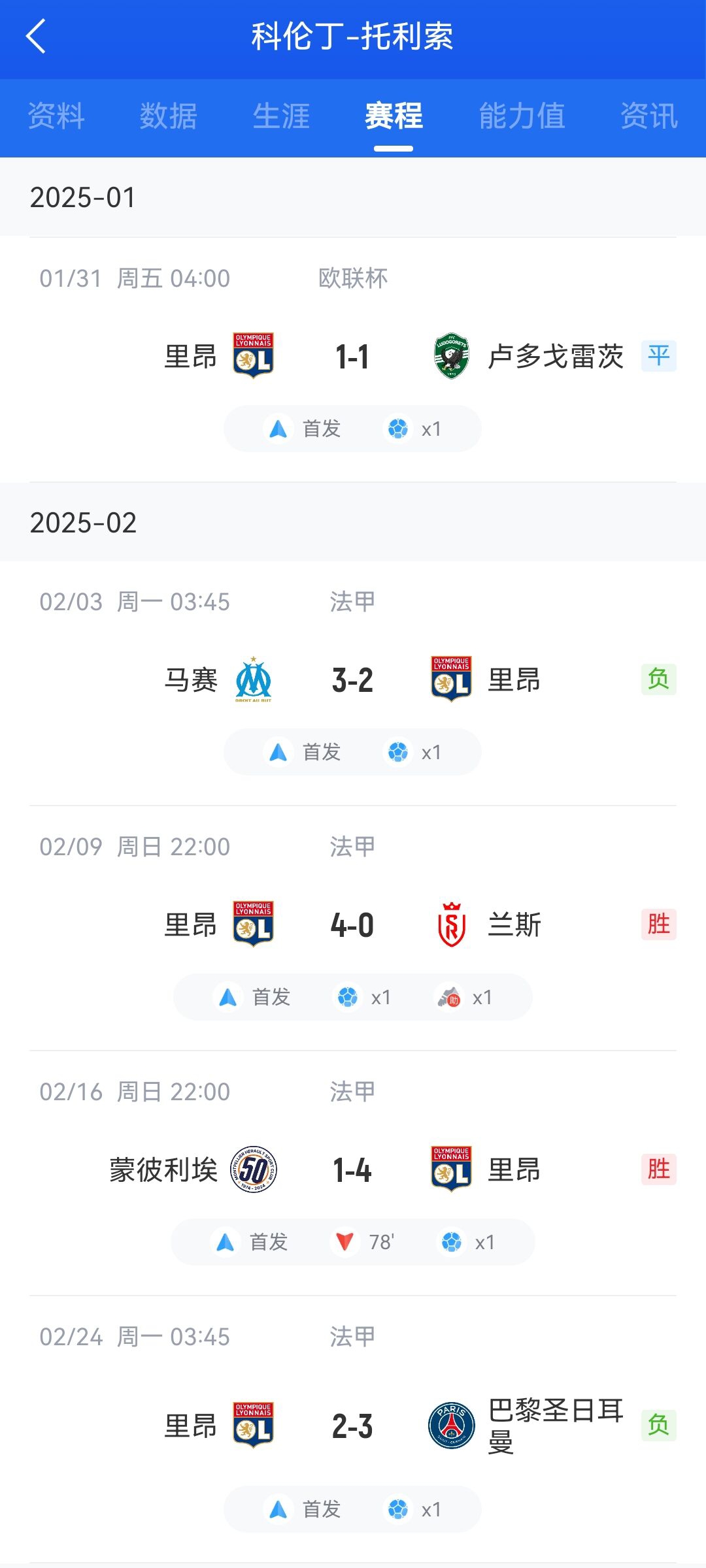 02月25日讯 在周末的法甲第23轮中,里昂2-3不敌巴黎,本场比赛托利索打入一球,他在里昂的近5场比赛中每场都能打入一球。