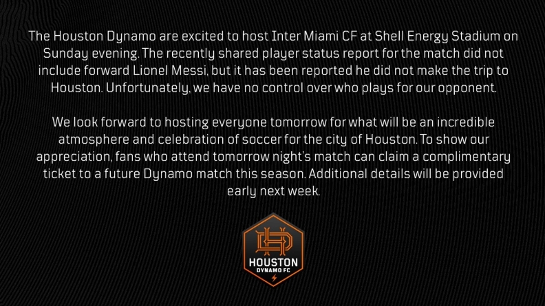 主场战迈阿密但梅西轮休!休斯顿官方:观赛球迷可免费获1张门票