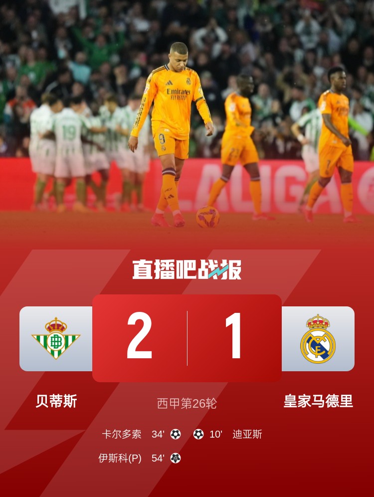 早报:皇马1-2遭贝蒂斯逆转;马竞1-0先赛暂登顶
