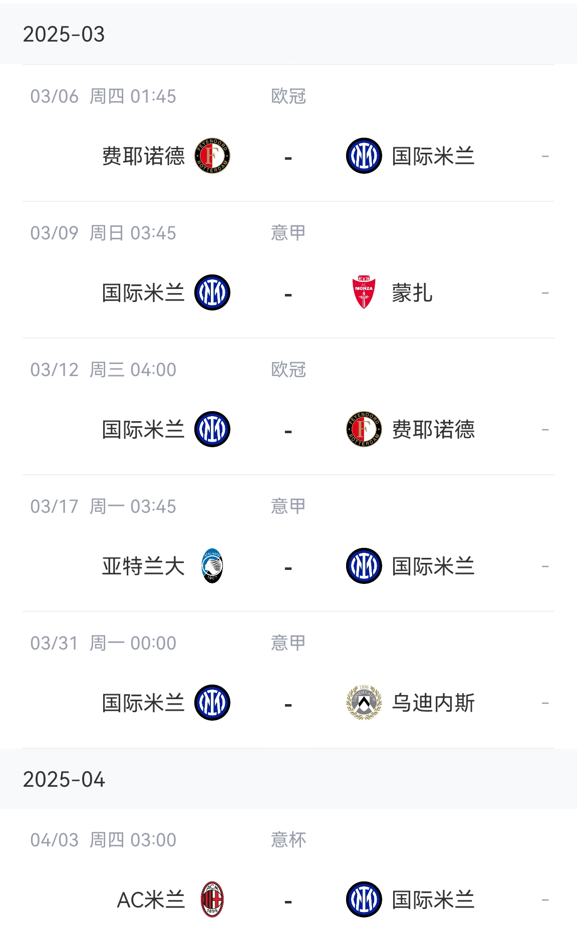 国米未来赛程↓