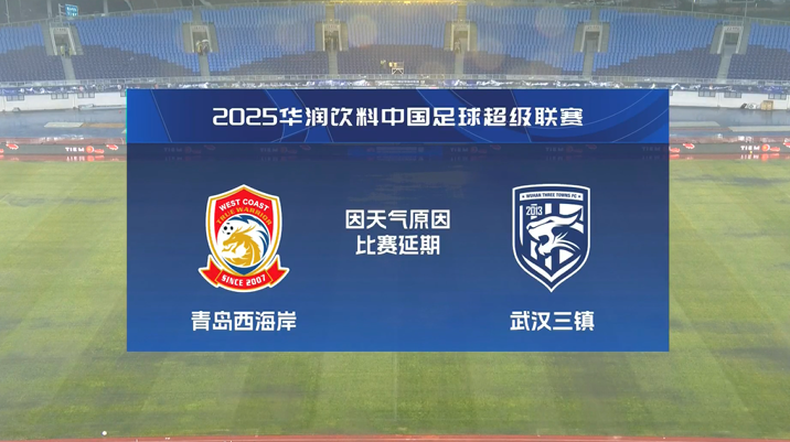 3月3日讯 中超联赛第二轮青岛西海岸迎战武汉三镇的比赛于3月2日15:30分在西海岸大学城体育场进行,上半场魏黾哲开场献精彩扑救,阿齐兹门前闪击破门先开记录,随后比赛进行至第18分钟,因青岛持续大雨,现场条件无法达到比赛要求,中足联在征求双方参赛俱乐部球队、青岛赛区以及有关方面意见后,研究决定中止本场比赛,补赛时间为3月3日14:00,比赛场地不变,半场结束,青岛西海岸1-0武汉三镇。