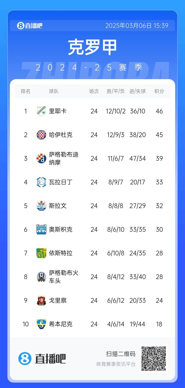 克罗地亚甲,法比奥·卡纳瓦罗执教的萨格勒布迪纳摩,主场2-2战平加图索执教的斯普利特哈伊杜克,两队继续分列第三和第二。1分对于两队来说都不满意,好在榜首的里耶卡也战平,否则斯普利特海杜克和里耶卡的分差将被拉大。