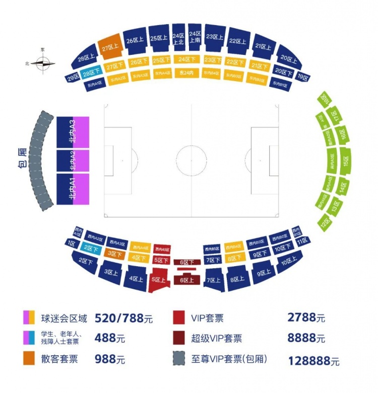 2、套票票价及看台分布: