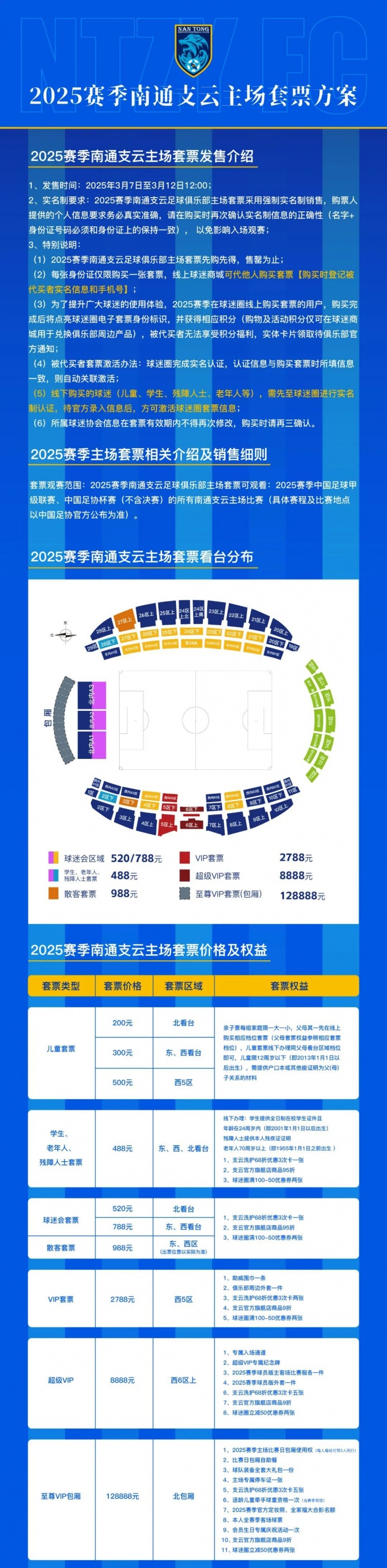 ​即日起,2025赛季南通支云足球俱乐部主场套票正式发售,具体方案如下: