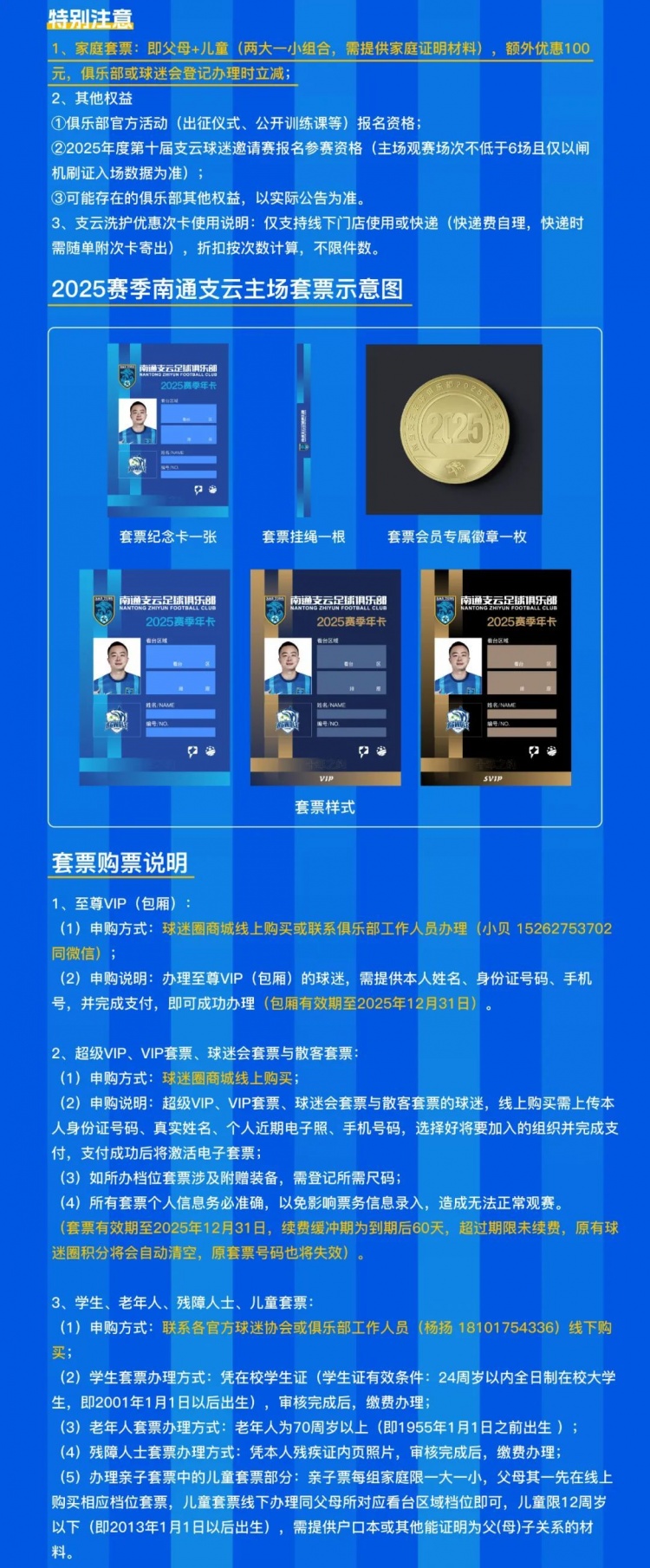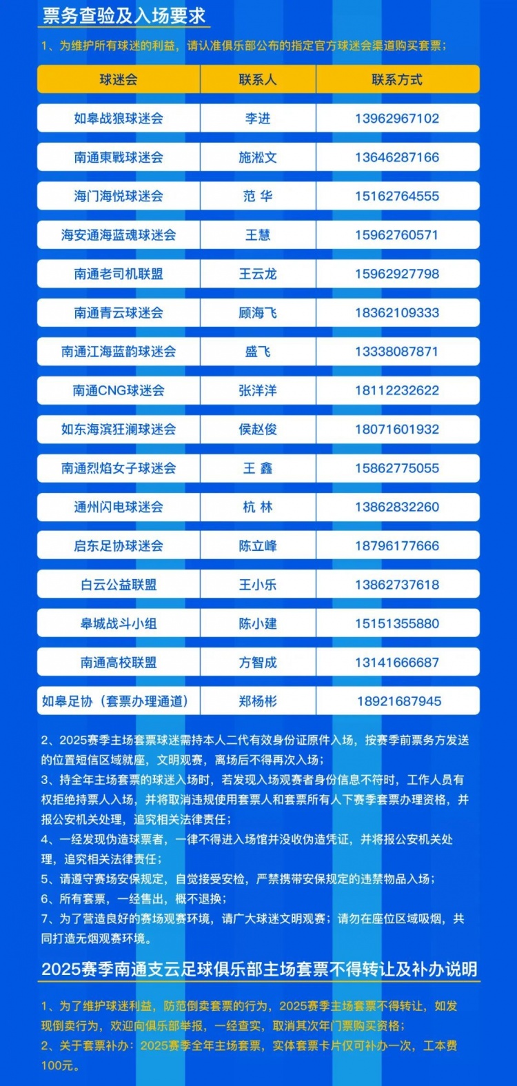 ​五、2025赛季南通支云足球俱乐部主场套票不得转让及补办说明: