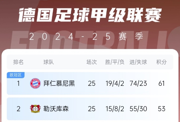德甲第25轮,拜仁主场2-3不敌波鸿。这给了排名第二的勒沃库森追分的机会。
