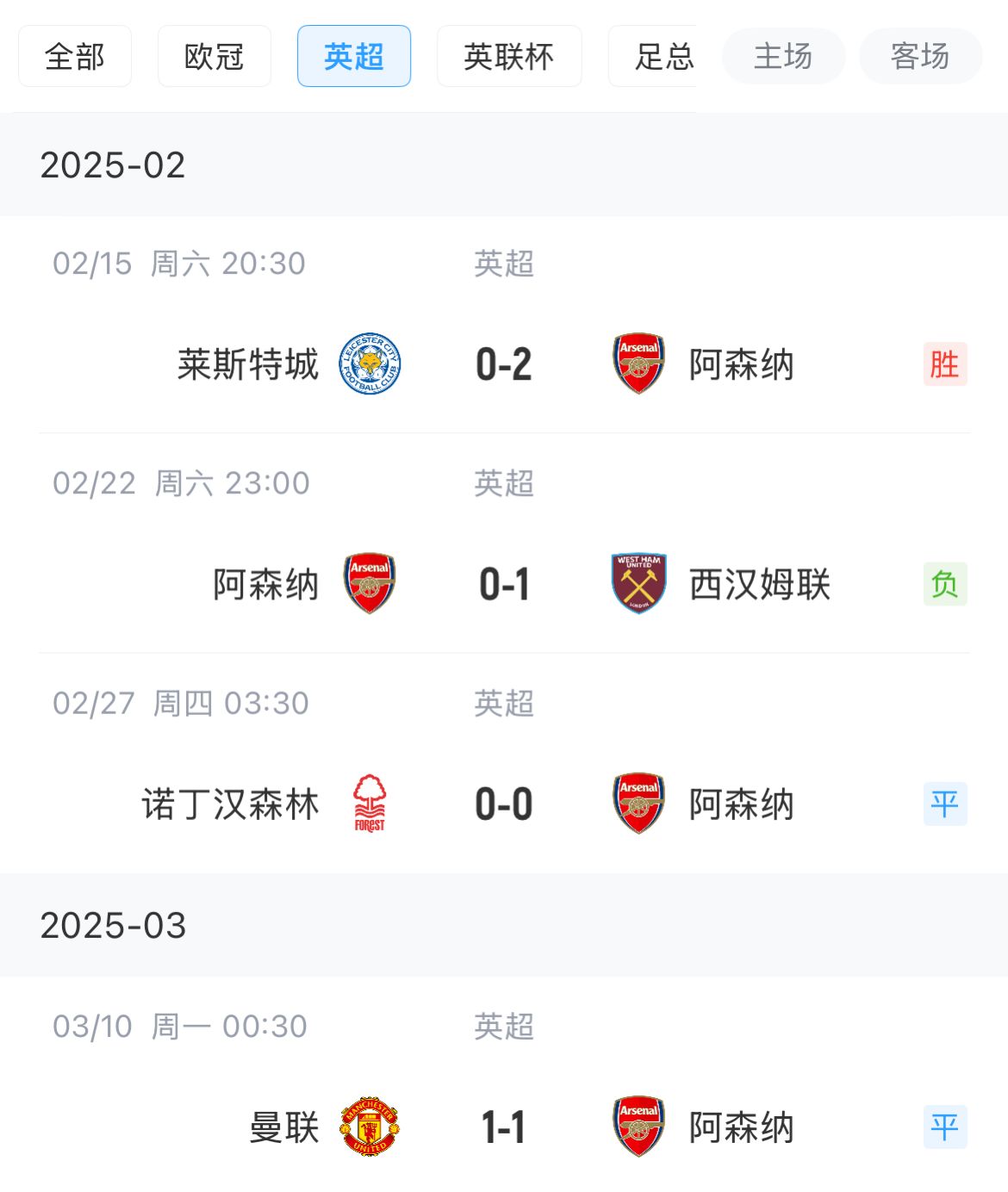 过去三轮比赛,阿森纳总共只拿到2分,面对西汉姆联、诺丁汉森林和曼联,枪手总共只打进1球。