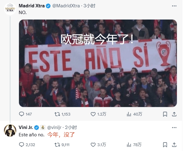 赛后维尼修斯在社媒连续更新4条动态(推特3条,ins1条)。