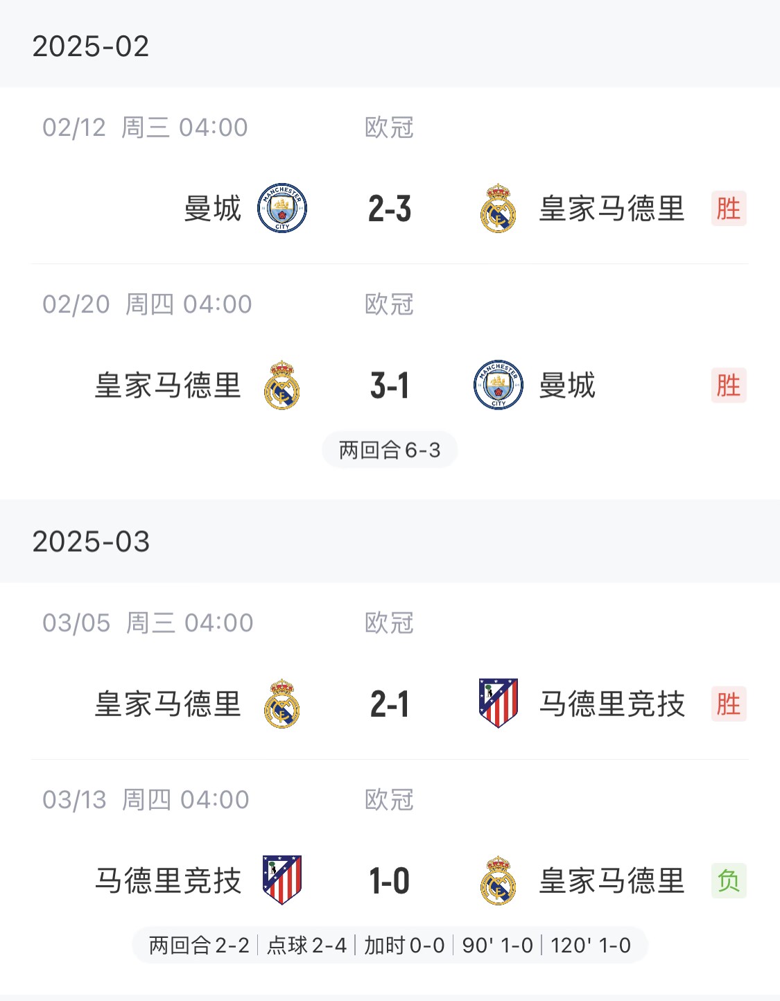 ▶️2025年03月13日 皇马总比分2-2点球4-2淘汰马竞 8强将战阿森纳 小蜘蛛点球违例 ▶️2025年03月13日 战巴黎!维拉3-0总比分6-1布鲁日进8强 阿森西奥双响拉什福德助攻 ▶️2025年03月13日 挺进8强!阿森纳2-2总比分9-3埃因霍温 四分之一决赛将战皇马 ▶️2025年03月13日 将战巴萨!多特2-1总比分3-2逆转里尔 埃姆雷-詹点射拜尔建功 ▶️2025年03月13日 无缘逆转!广岛三箭总比分1-4狮城水手遭淘汰 首回合6-1被判0-3! ▶️2025年03月12日 韩国独苗!光州3-2翻盘神户进八强 阿萨尼85分钟绝平118分钟绝杀 ▶️2025年03月12日 止步16强!申花0-4惨败川崎总比分1-4遭淘汰 鲍亚雄失近角+遭戏耍 ▶️2025年03月12日 亚冠-马赫雷斯梅开二度 吉达国民2-0赖扬两回合5-1晋级 ▶️2025年03月12日 亚冠-新月4-0总比分4-1塔什干棉农进八强 马尔科姆破门多萨里点射 ▶️2025年03月12日 双杀完胜!拜仁2-0总比分5-0勒沃库森晋级欧冠8强 凯恩传射建功 ▶️2025年03月12日 无缘8强!利物浦两回合1-1点球1-4巴黎 登贝莱破门多纳鲁马两扑点 ▶️2025年03月12日 双杀!国米2-1总比分4-1费耶诺德晋级将战拜仁 图拉姆恰20破门 ▶️2025年03月12日 双杀进8强!巴萨3-1总比分4-1本菲卡 拉菲尼亚2射1传亚马尔传射 ▶️2025年03月11日 球迷扔水瓶&绝平被吹引争议!柔佛主场0-1武里南联无缘亚冠八强 ▶️2025年03月11日 亚冠止步16强!海港1-4横滨总分1-5出局 海港中后场多人犯错溃败