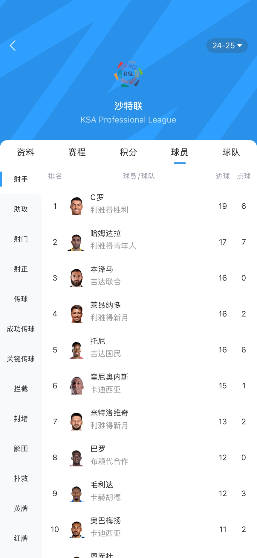 沙特联射手榜,40岁C罗19球领跑,37岁本泽马遭遇4轮球荒,16球排第三,托尼16球、米特洛维奇13球、奥巴梅扬11球。
