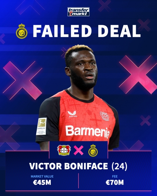 5、博尼法斯(勒沃库森)→利雅得胜利