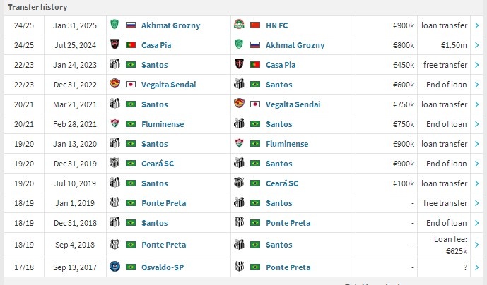 根据《转会市场》资料,卡多索已经由格罗兹尼租借加盟河南队,球员目前的身价是90万欧元。
