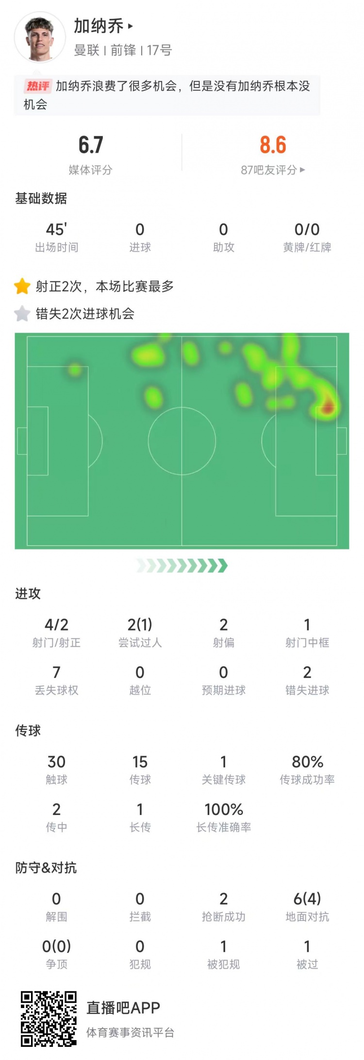 持续制造威胁!加纳乔当选曼联vs莱斯特城全场最佳球员